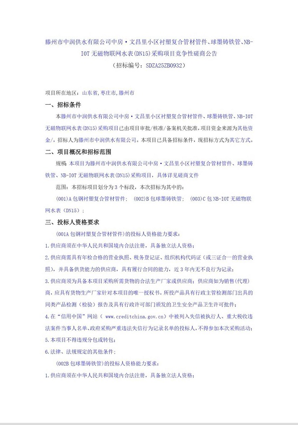 文章推荐: 南宁市兴宁区老旧供水管网改造工程(第一批)设备及材料采购 河南钢铁安钢永通储运固资检修施工(二次)公开招标招标公告 晋能控股集团晋城公司东大能源有限公司配件2025年6月水泵配件物资采购(第二次采购) 霍邱县第三水厂新建工程(长集等4乡镇老旧管网改造)监理